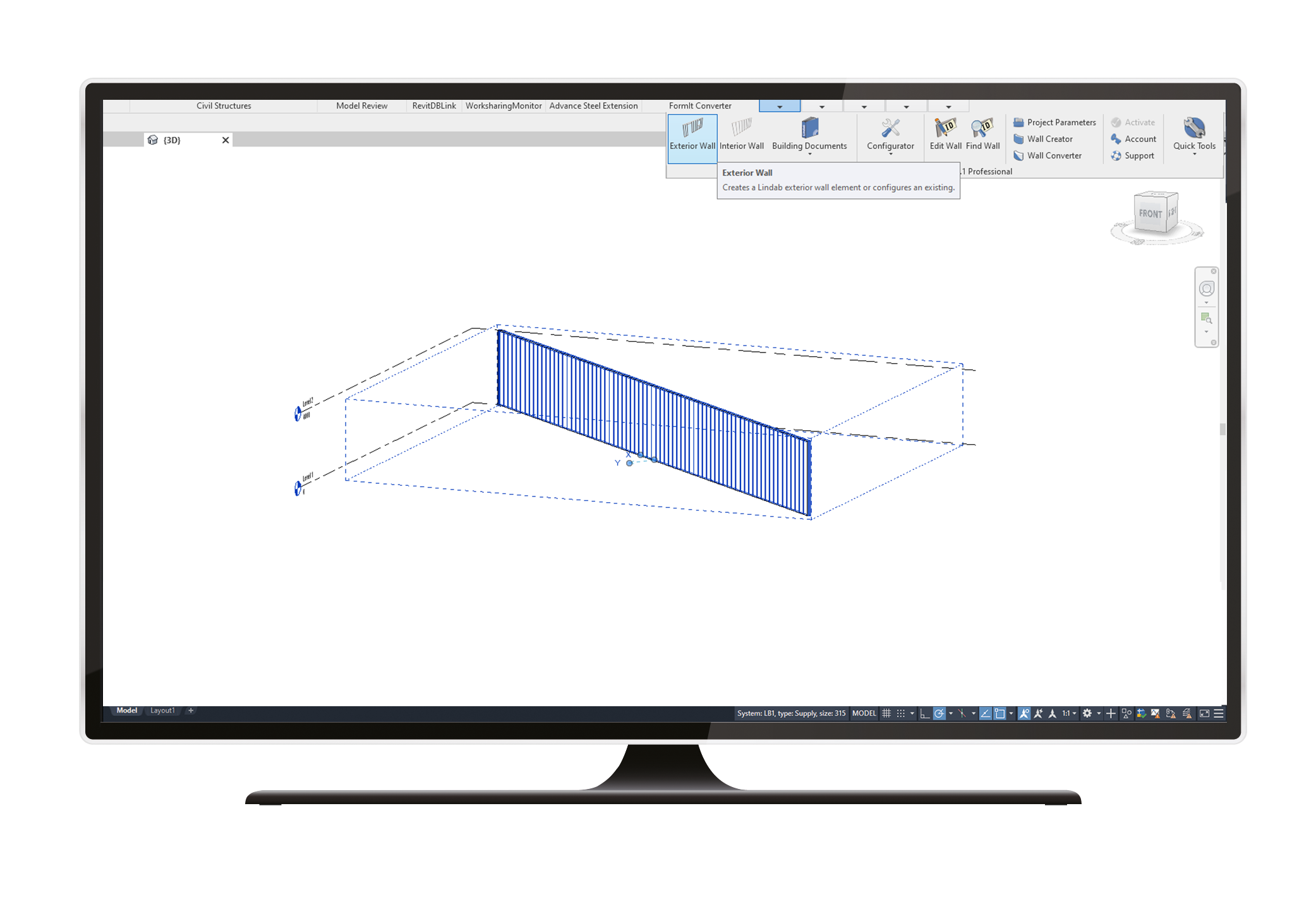 The software includes a complete tool palette for handling steel stud walls in Revit. With the help of the software, it is possible to create wall tags, wall section schedules, outer and inner wall elements, material specifications for steel studs and wall materials and assembly drawings.