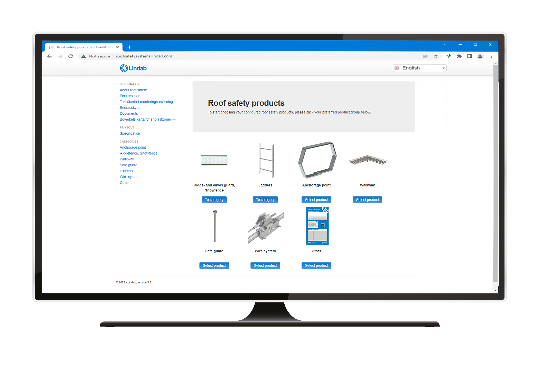 This web application is used to create specifications for our various roof safety products. You specify your various parameters, and the application produces specifications for roof safety products in accordance with Swedish requirements and regulations to provide the right basis for a safe roof.