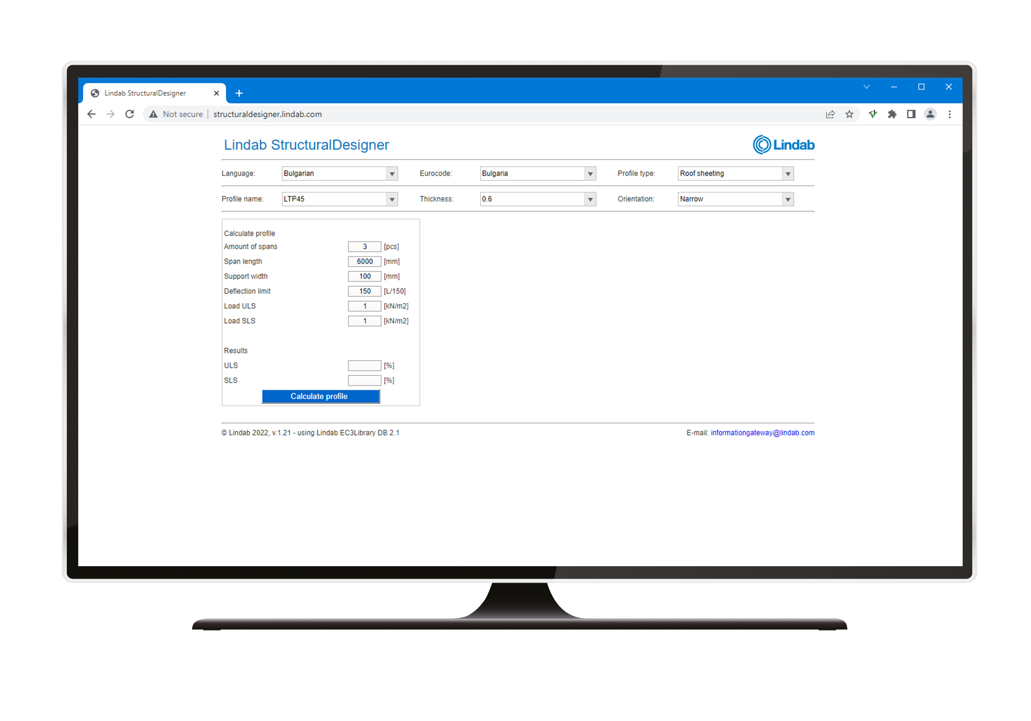 StructuralDesigner is a Eurocode based design software for profiled sheets, purlins and hat-profiles. Lindab's complete range of profiles within these product categories are included. The software has a built-in module for analysis of snow pockets, and it presents results in Ultimate Limit State and Serviceability Limit State.