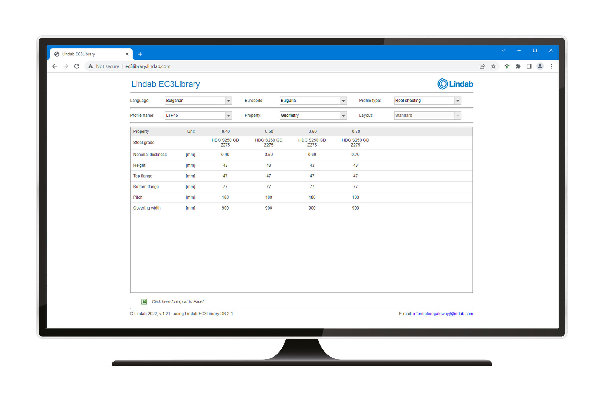 This web application contains section data and geometries for our portfolios of sheet metal, C, Z, U and hat profiles. The properties are calculated according to Eurocode and are available for a selection of European countries.