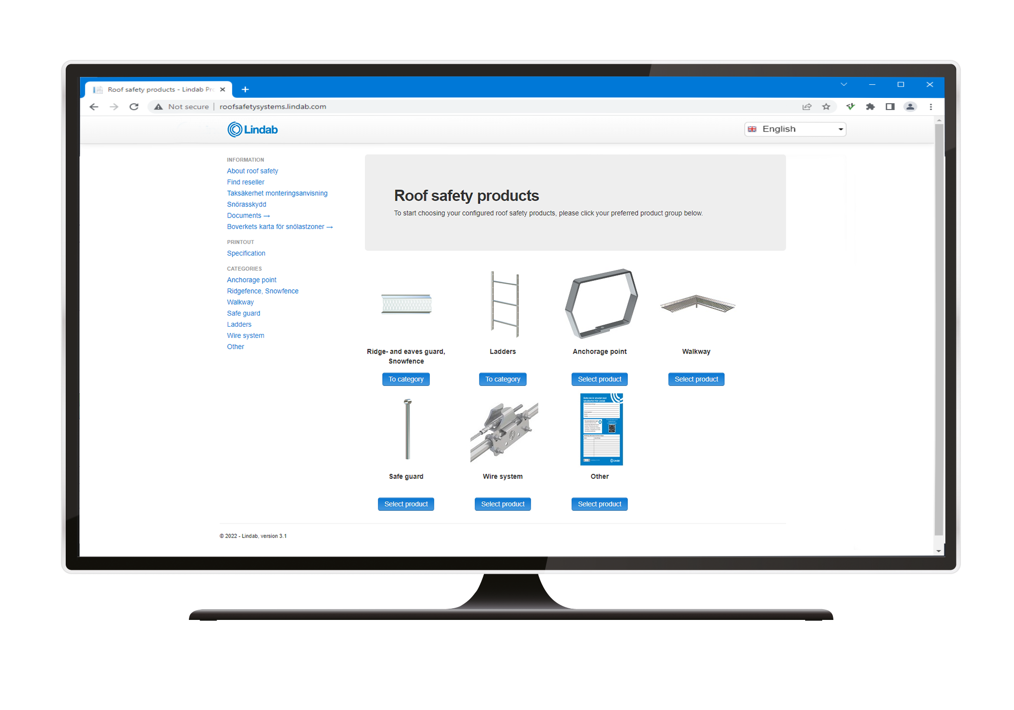 This web application is used to create specifications for our various roof safety products. You specify your various parameters, and the application produces specifications for roof safety products in accordance with Swedish requirements and regulations to provide the right basis for a safe roof.