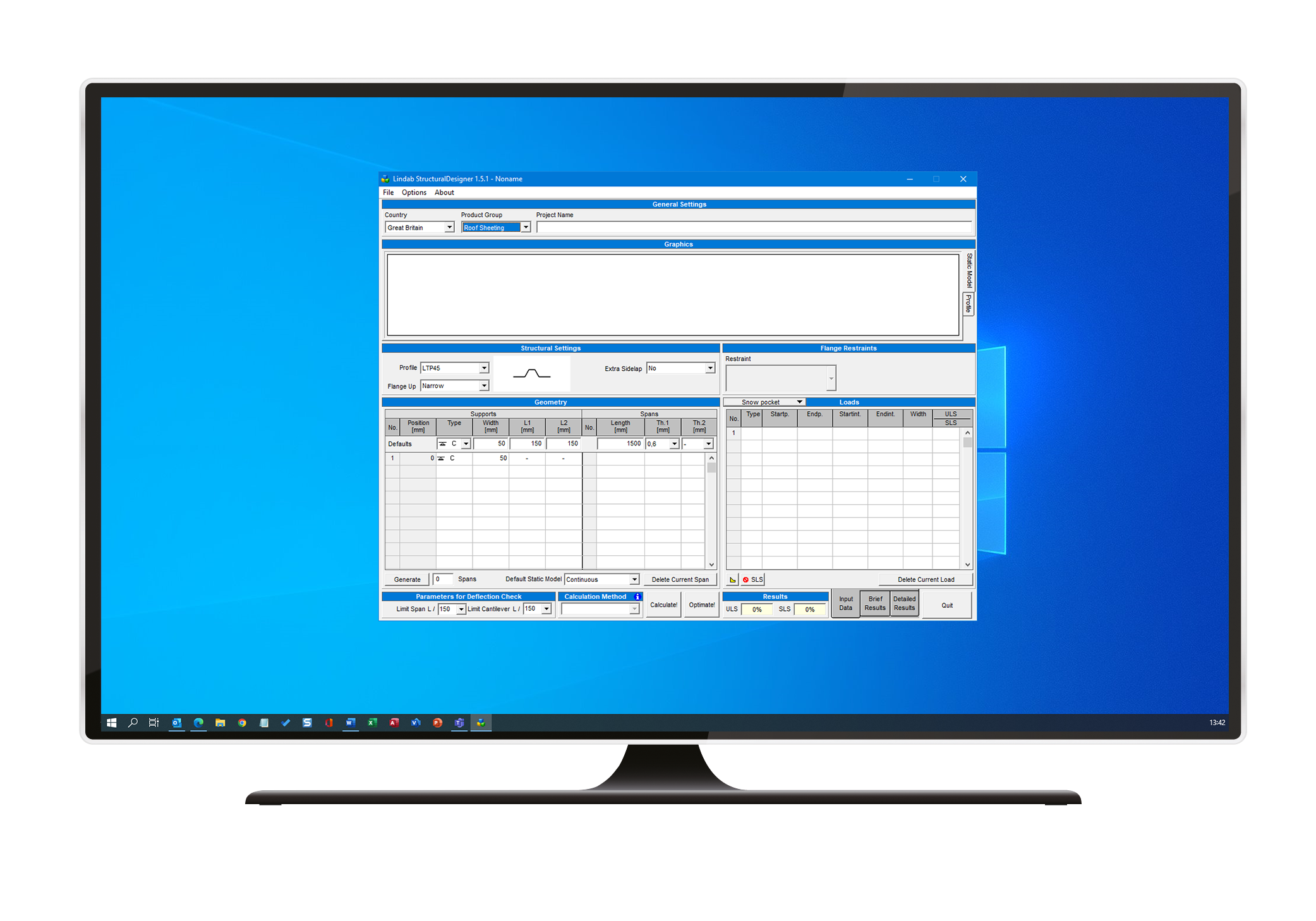 StructuralDesigner is a Eurocode based design software for profiled sheets, purlins and hat-profiles. Lindab's complete range of profiles within these product categories are included. The software has a built-in module for analysis of snow pockets, and it presents results in Ultimate Limit State and Serviceability Limit State.