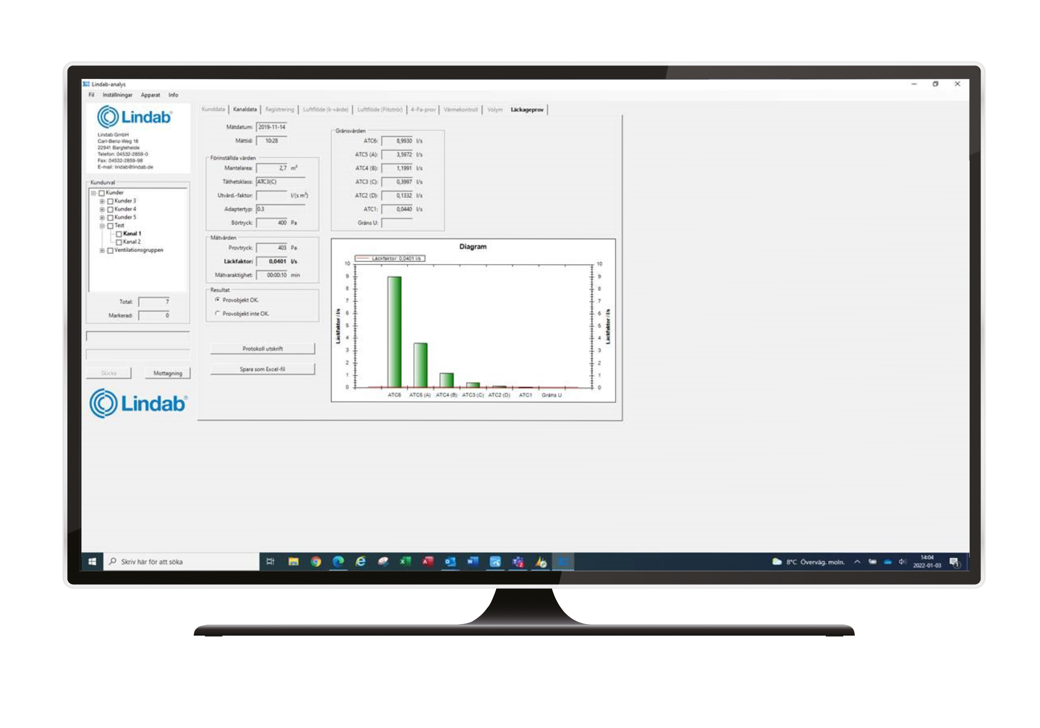 This software is for storing and handling measuring data from air leakage tester LT600 & PC410. With this software you can create customer profiles, transfer them into the measuring instrument, and after the measurement you can transfer the records from the instrument back to the software directly into the customer profile. And then you can store, comment, document and print the measurement records.