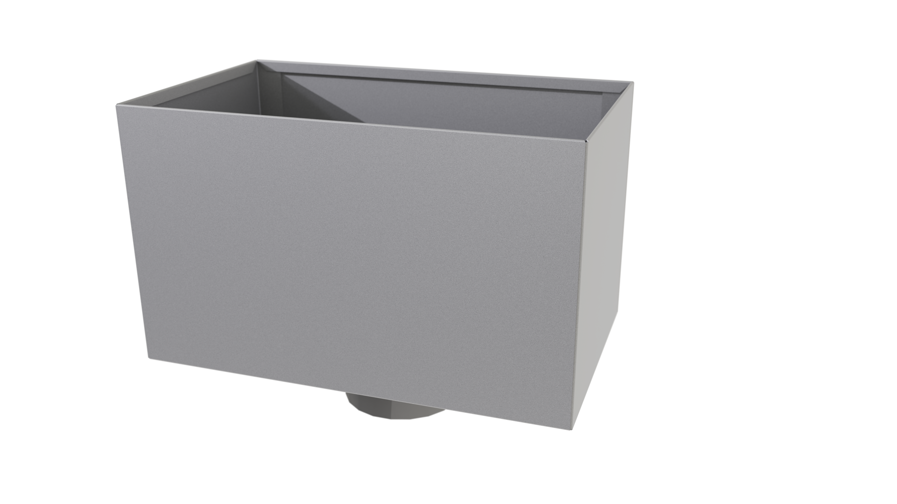 Water hopper for diverting water. The water hopper carries water from the gutter or roof down to the downpipe. This product is often installed on traditional seamed roofs and when making a drainage with a roof mounted gutter.