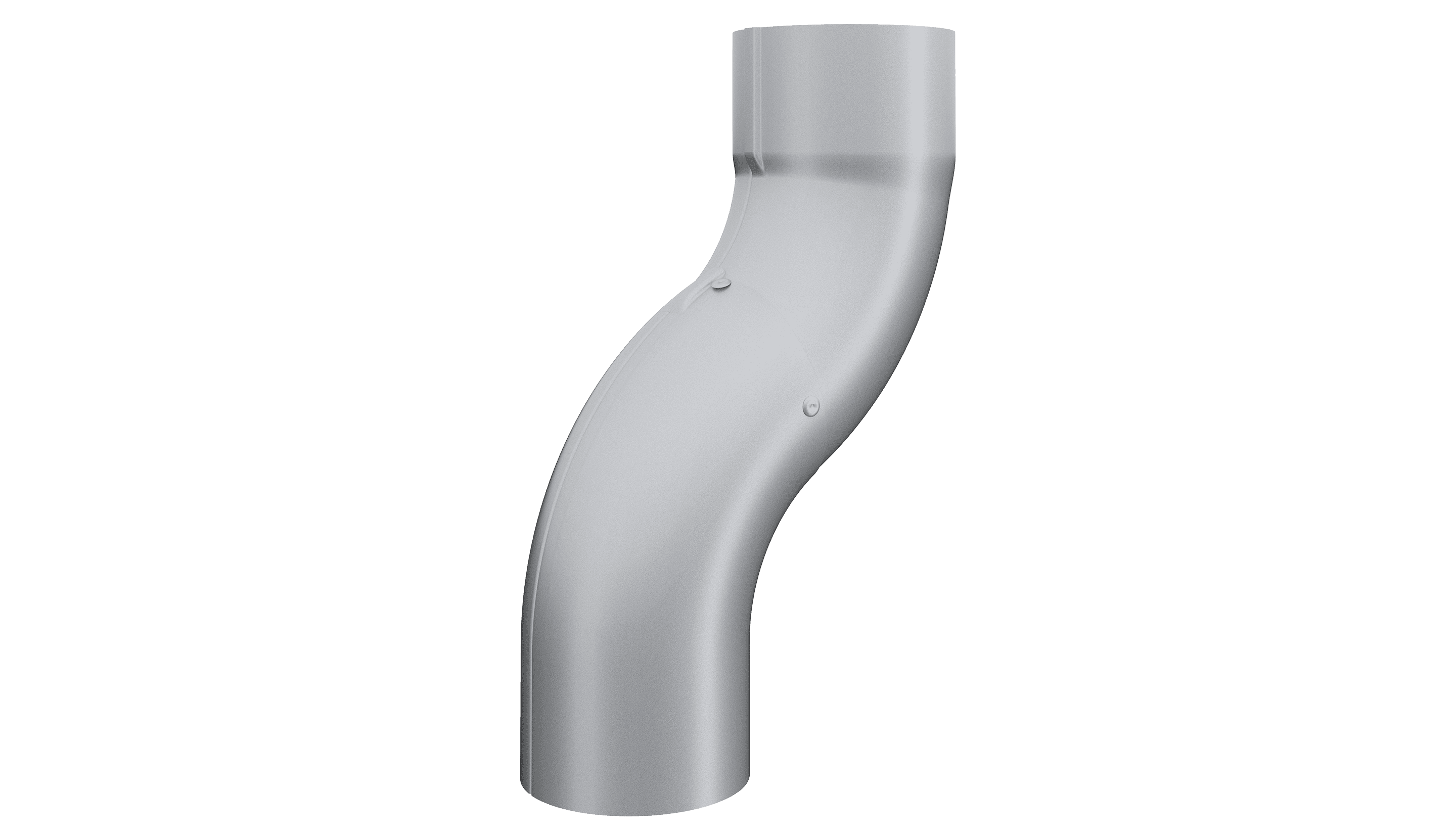 A one piece bend to simplify the construction when the ground connection pipe is further out from the wall of the house than the downpipe.