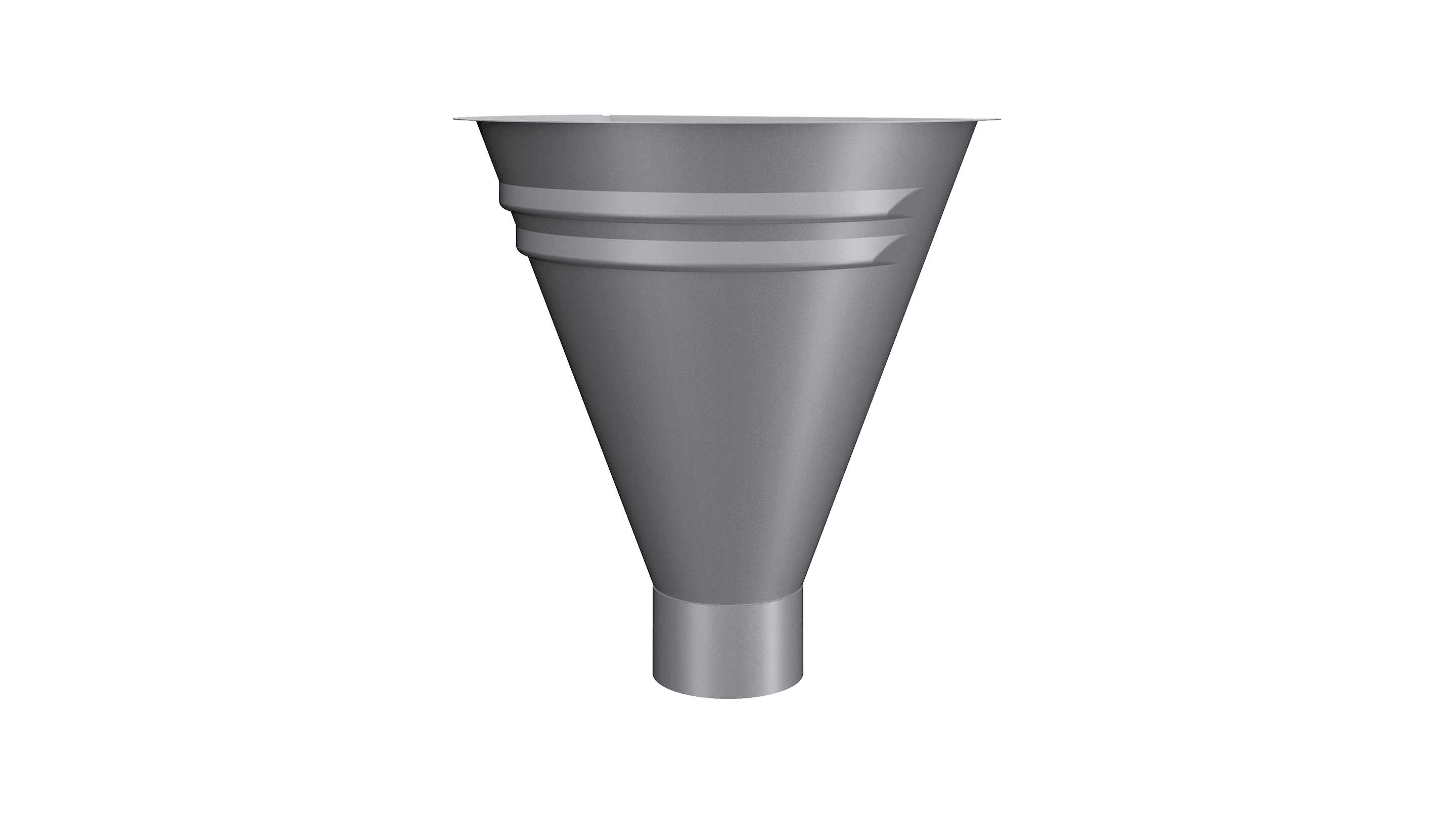 A traditional halfround water hopper for traditional installations! These products are often installed when standing seam are installed on the roof. This product is made of powder-coated galvanised steel with 0.6 mm thickness. The powder has been carefully developed to match perfectly with the pre-coated material and no difference in design will occur.