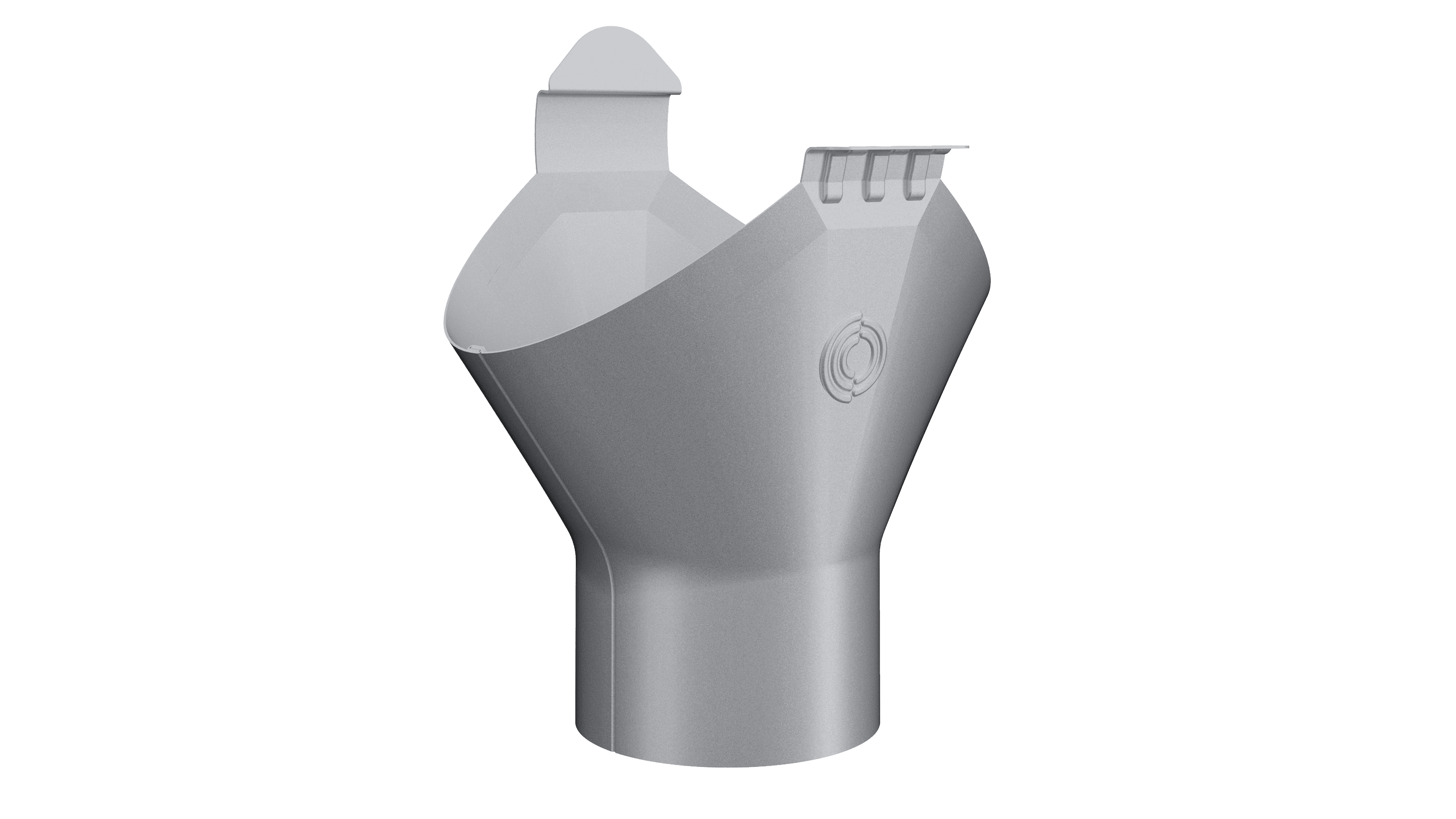 The gutter outlet has a perfect fit to the half round gutter, following its geometry closely. The installation with the hidden lock function in the bead of the gutter in the front and the click function in the back makes the installation both easy and nice looking.