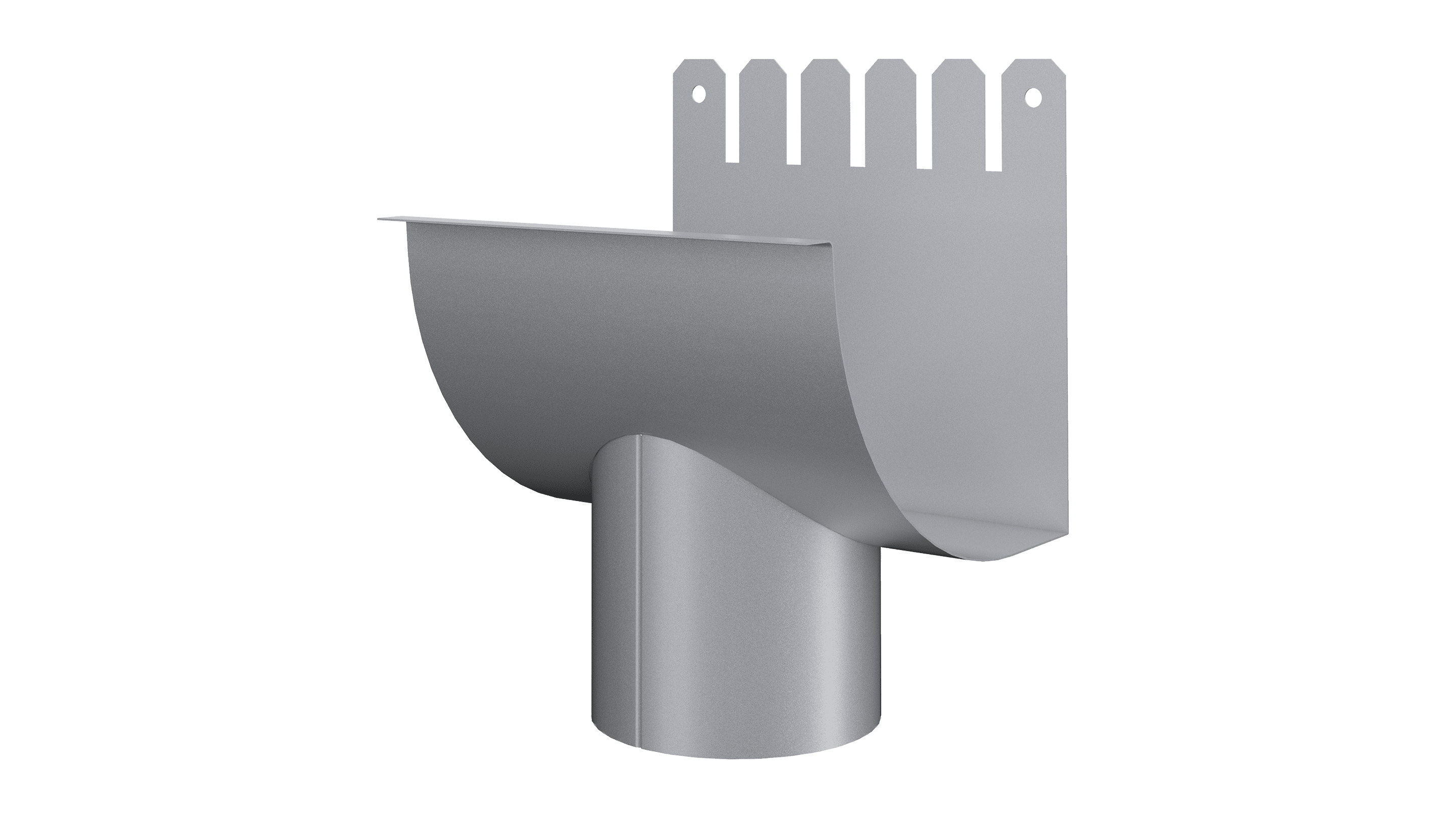 This gutter outlet has a perfect fit to the quarter round gutter, following its geometry closely. The installation with the hidden lock function in the bead of the gutter in the front and the back makes the installation both easy and nice looking.