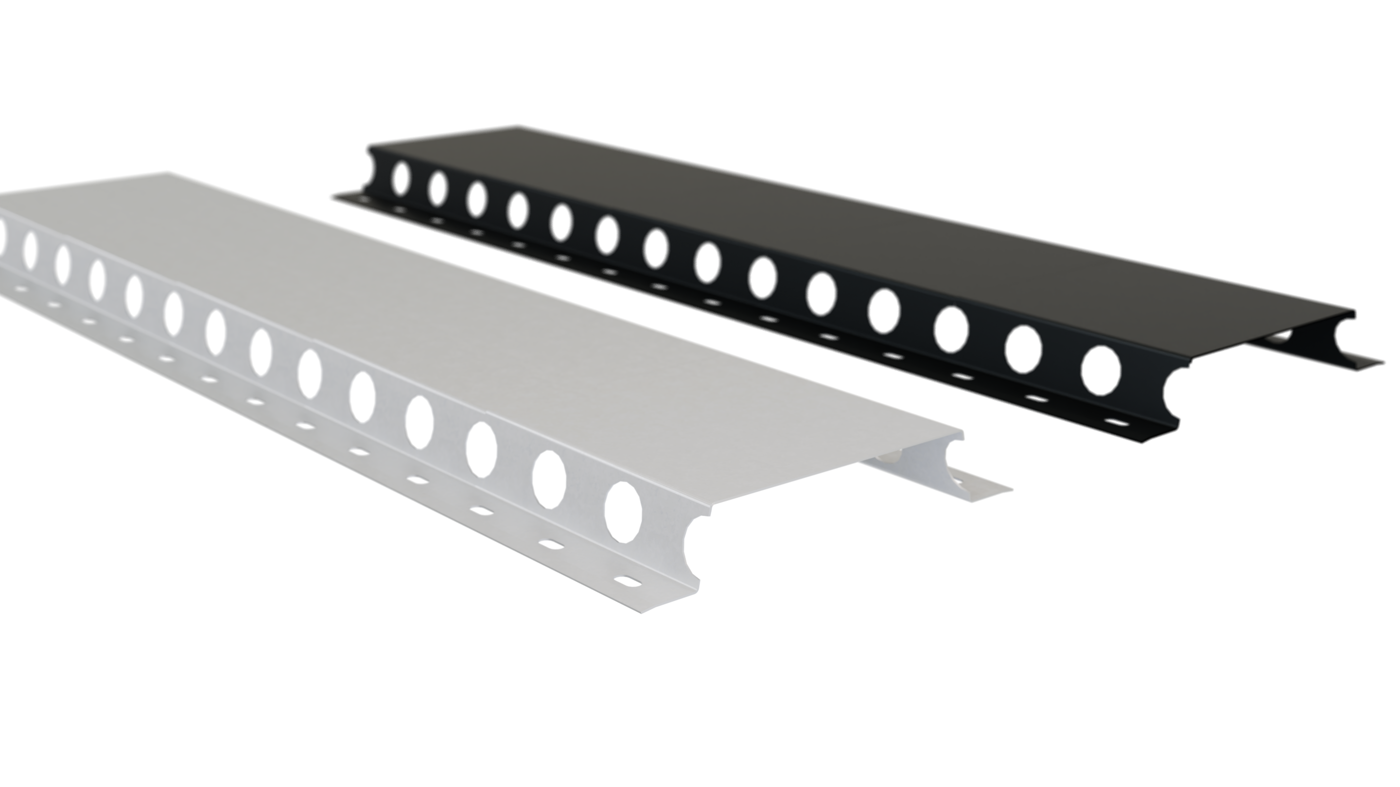 A ventilated steel facade batten is used to create an ventilated space between the external wall of a building and the facade cladding (e.g. boards, panels or bricks).