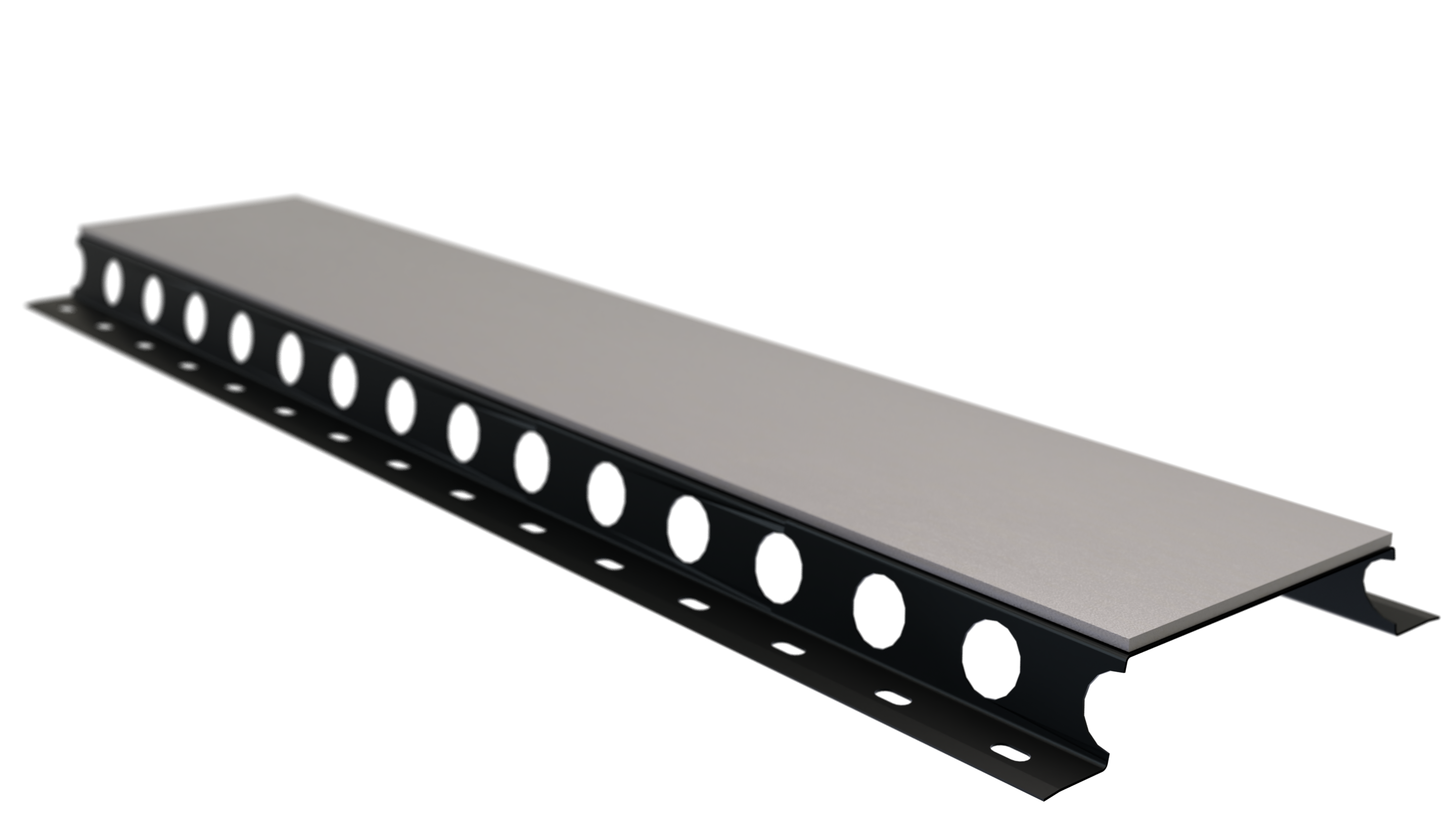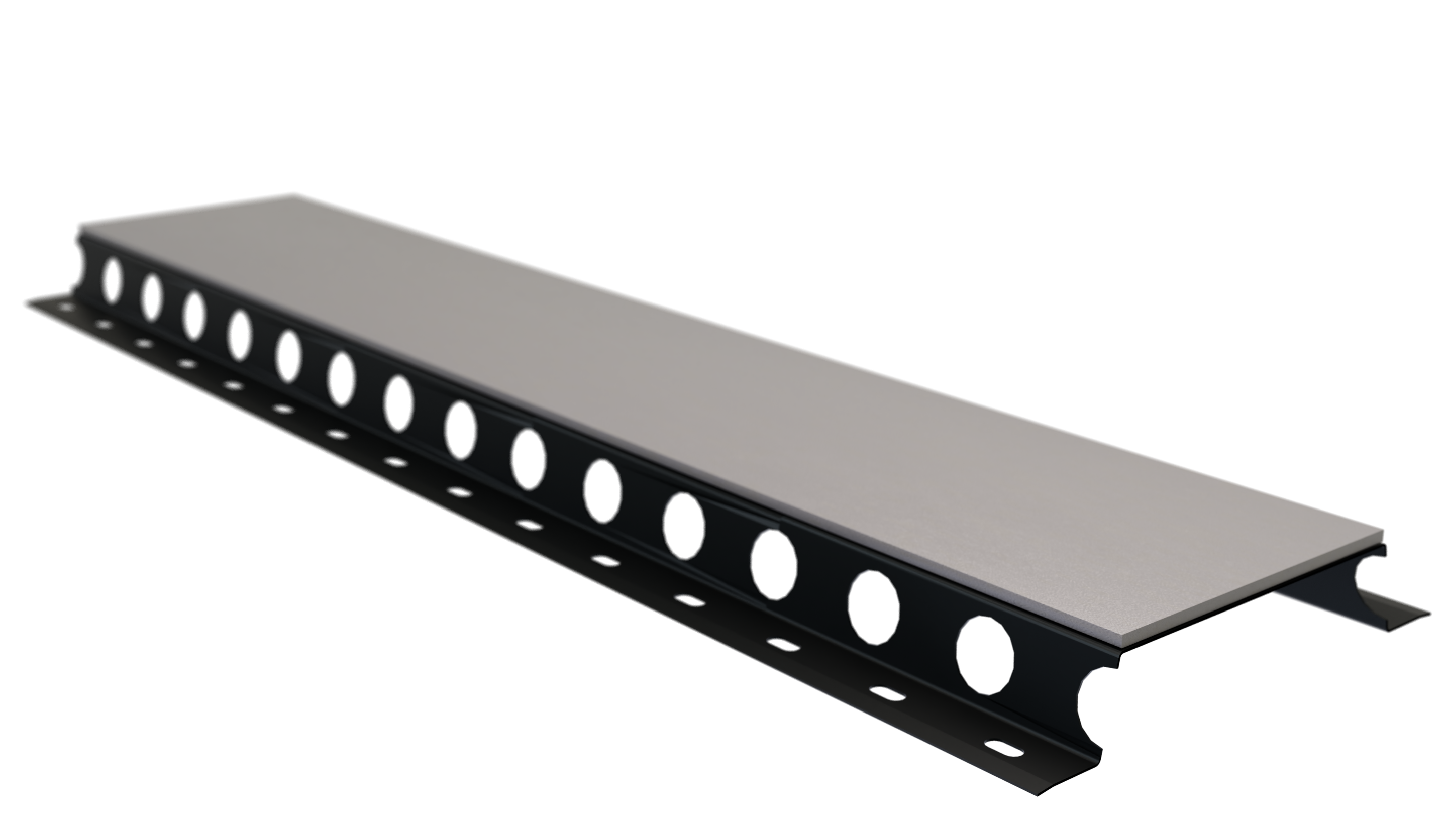 A ventilated steel facade batten is used to create an ventilated space between the external wall of a building and the facade cladding (e.g. boards, panels or bricks).
