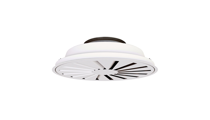 RC14 is a circular diffuser with integrated swirl insert with fixed bars. The diffuser is suitable for the horizontal supply of very cold air. The integrated swirl insert ensures optimum distribution and high induction.