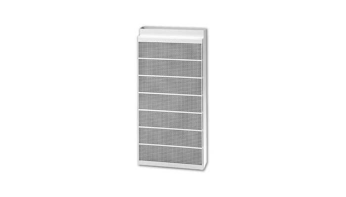 Comdif CRA is a rectangular perforated displacement diffuser for installation against a wall or column. CRA has a rectangular connection and therefore has a limited depth, making it ideal for installation in premises where a discrete appearance is required. Behind the perforated front plate, CRA is equipped with individually adjustable nozzles, making it possible to alter the geometry of the near zone. The diffuser can be turned and has a rectangular duct connection, so the diffuser can be connected at the top or bottom. The connection duct CRAZ with a circular connection is available as an accessory. The diffuser is suitable for the supply of large volumes of moderately cooled air.