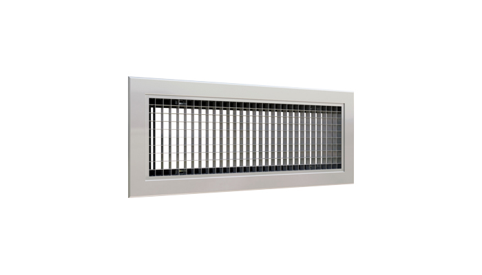 Optional grids are eggcrate mesh 0° or 45° inclination and fixed 58° angle blades. The grille is suitable for wall installation.