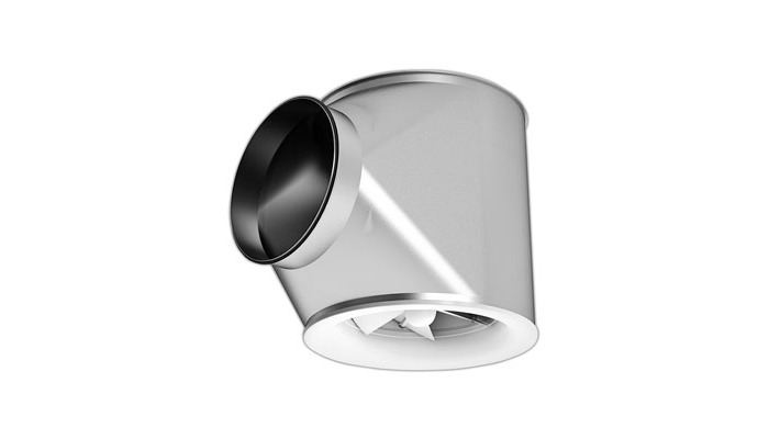 RCWB is a swril diffuser (RCW) with integral box, particularly suitable for rooms with a high ceiling.