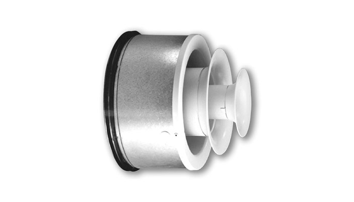 GTI is a flexible supply air nozzle that is suitable for ventilation of large areas. The nozzle can be used for both heated and cooled air and can be adjusted from diffused to concentrated supply air patterns. The supply air pattern can be adjusted by turning the insert in relation to the central line of the nozzle. The nozzle is equipped with LindabSafeand can be installed directly into a circular duct, fitting, wall or duct side.