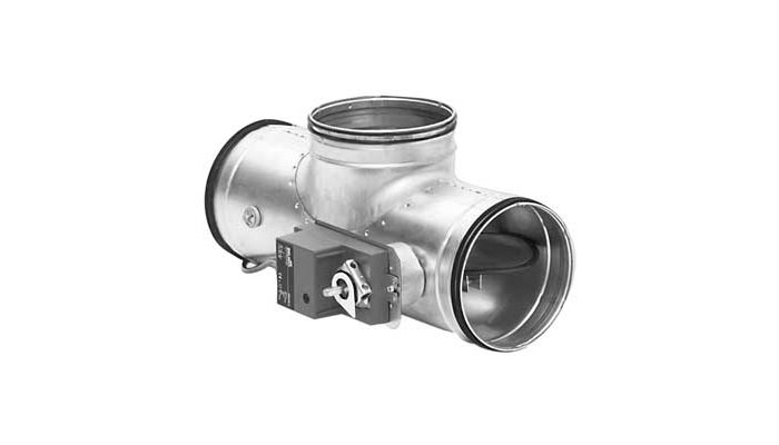 Consists of an extended T-piece with two linked DTU dampers and a 24 or 230 V electric motor installed.