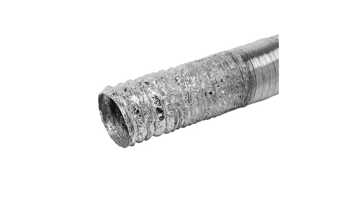 Multiple layer product made up of aluminium/PET laminate formed into a flexible duct supported by a bronze coated wire helix.