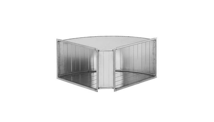 Bend with rounded outer corner, stiffened with trapezoid corrugations.