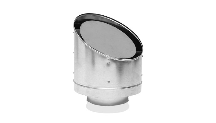 Circular roof hood with angled upper side intended for outdoor air and extract air. The hood is designed for location above the roof with or without a roof through connection. The air runs both on the top- and downside of the hood. This is valid both for outdoor and extract air. The hood is free-draining downwards. Can also be supplied with a pest-proof mesh.