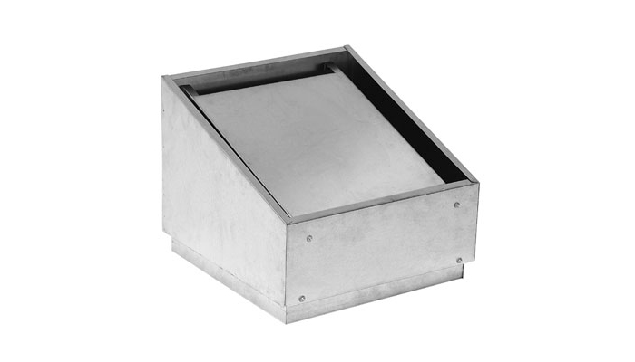 Rectangular roof hood with angled upper side intended for outdoor air and extract air. HVR is designed for positioning above the outer roof on the roof through connection.