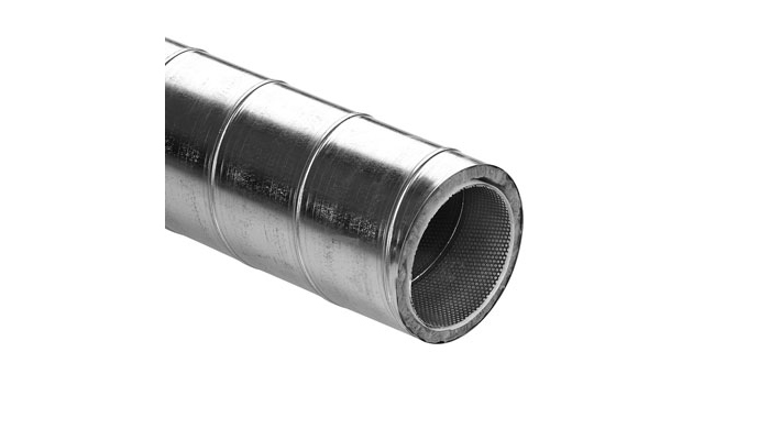 SRIP is constructed around a perforated inner duct, an outer black painted spirally wounded duct with intermediate insulation and equipped with end cap at the bottom. It is recommended to fasten SRIP to roof beam. Use beam fixture type SBG.