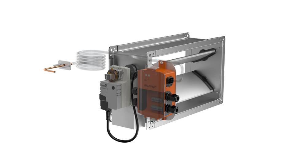 PRJ is equipped with pressure regulator, rotary actuator and with 2 m hose and measuring probe (not included in MR version for room pressure control).