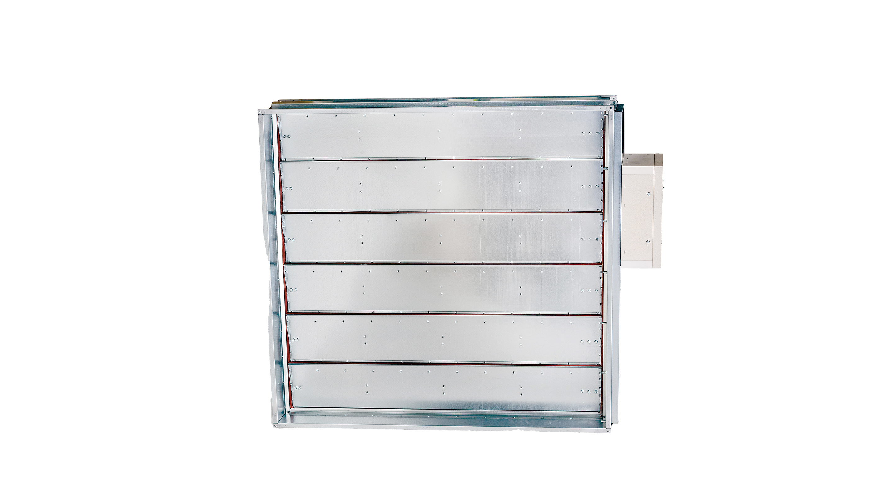 In the event of a fire, the smoke and heat will be extracted throughout the smoke control system and this damper is designed to either open or stay closed depending on the scenario, to be able to extract the smoke and heat out of the building.