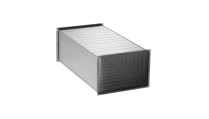 Straight duct, stiffened with transverse corrugations, which reduces the risk of noise generation. Larger dimensions have stiffening internal rods.