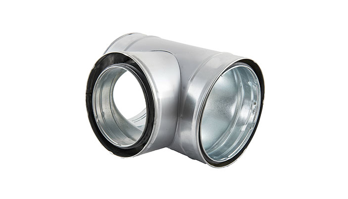 The T-piece is double-jacketed and insulated with mineral wool, and is supplied with Lindab Safe rubber seal on the inner dimension.