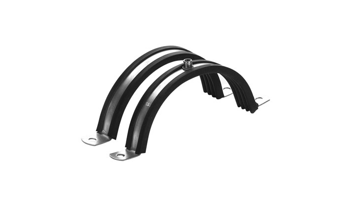 Suspension clamp with antivibration rubber.
