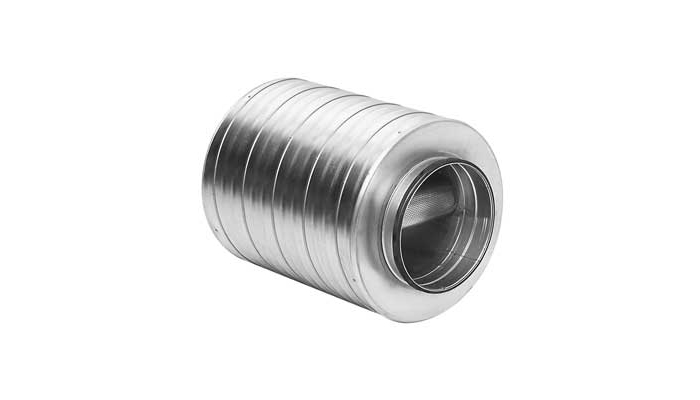Attenuation material is mineral wool. The SLBGU are made of strong outer spiral seemed tube and an inner tube made of steel with small openings to be able to withstand mechanical cleaning and at the same time not interfere with the insertion loss. The space between them is filled with mineral wool and a nonwoven cloth is inserted between inner tube and the attenuation material, to prevent fibres from the insulation getting into the duct system. Silencer can be cleaned by rotating nylon brushes, vacuum cleaner or damp cloth.