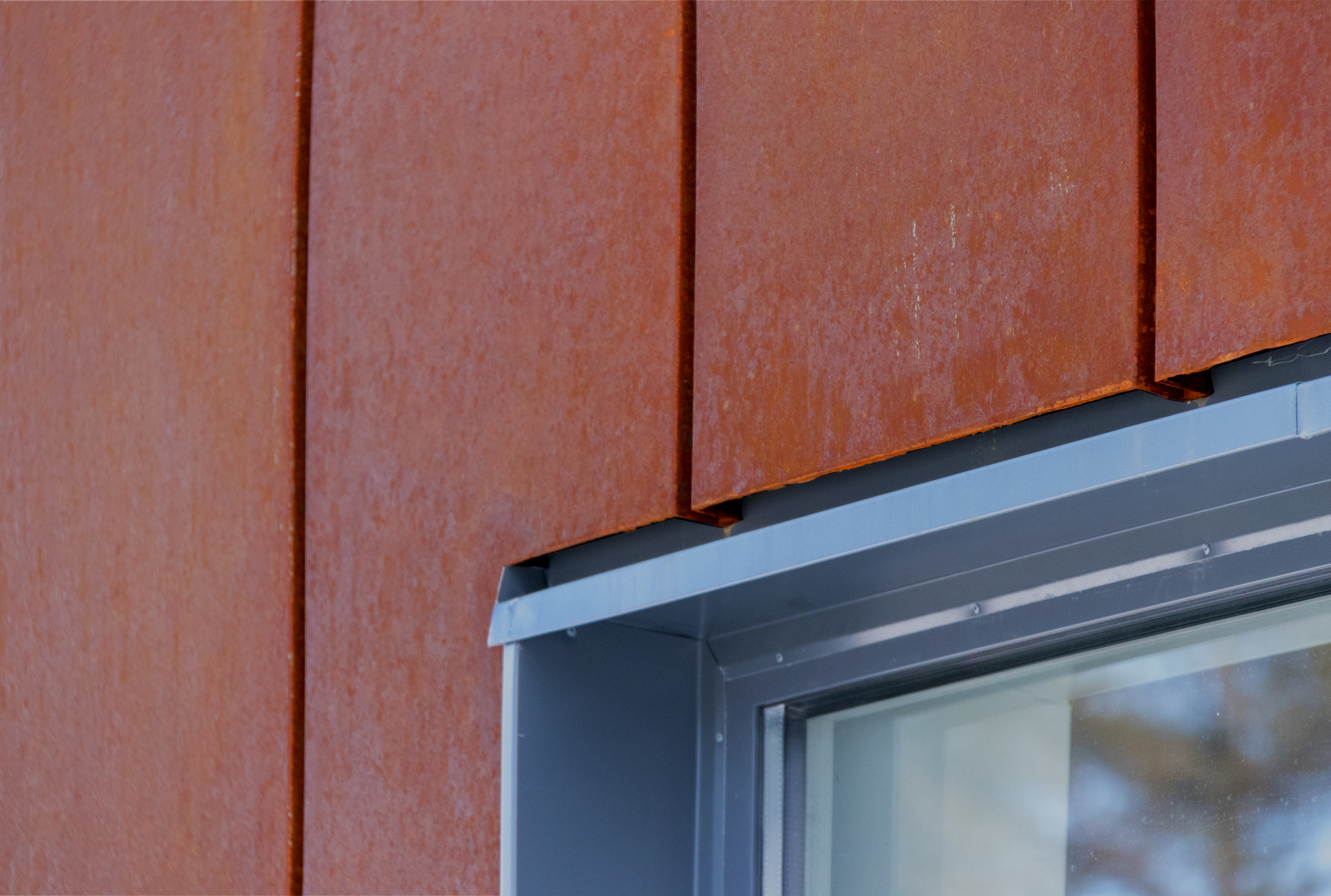 Rubigo is a stainless steel which, after exposure with rain and wind, forms an even and dense oxide layer (patina) to the steel surface. The surface slows moisture from penetrating and causing further corrosion. The material provides a beautifully patinated surface that requires minimal maintenance over the years.