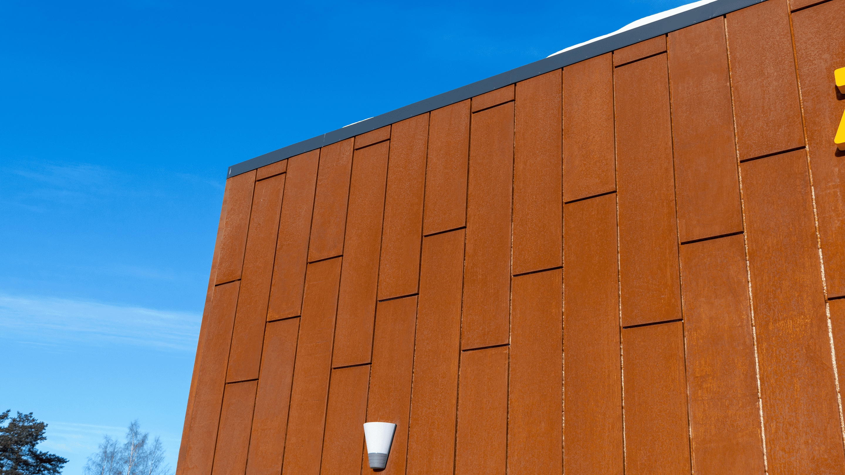 For the facade, the customer wanted a material that gave the facade a rough and slightly raw impression to fit well with the name. In a conversation with Lindab, it was decided to cover the facade with facade cassettes in stainless steel. The solution is called Lindab Rubigo and what distinguishes it from ordinary steel sheets, that has not been painted and rusts, is that Rubigo, despite its rusty appearance, still protects the underlying construction and has a much longer durability.