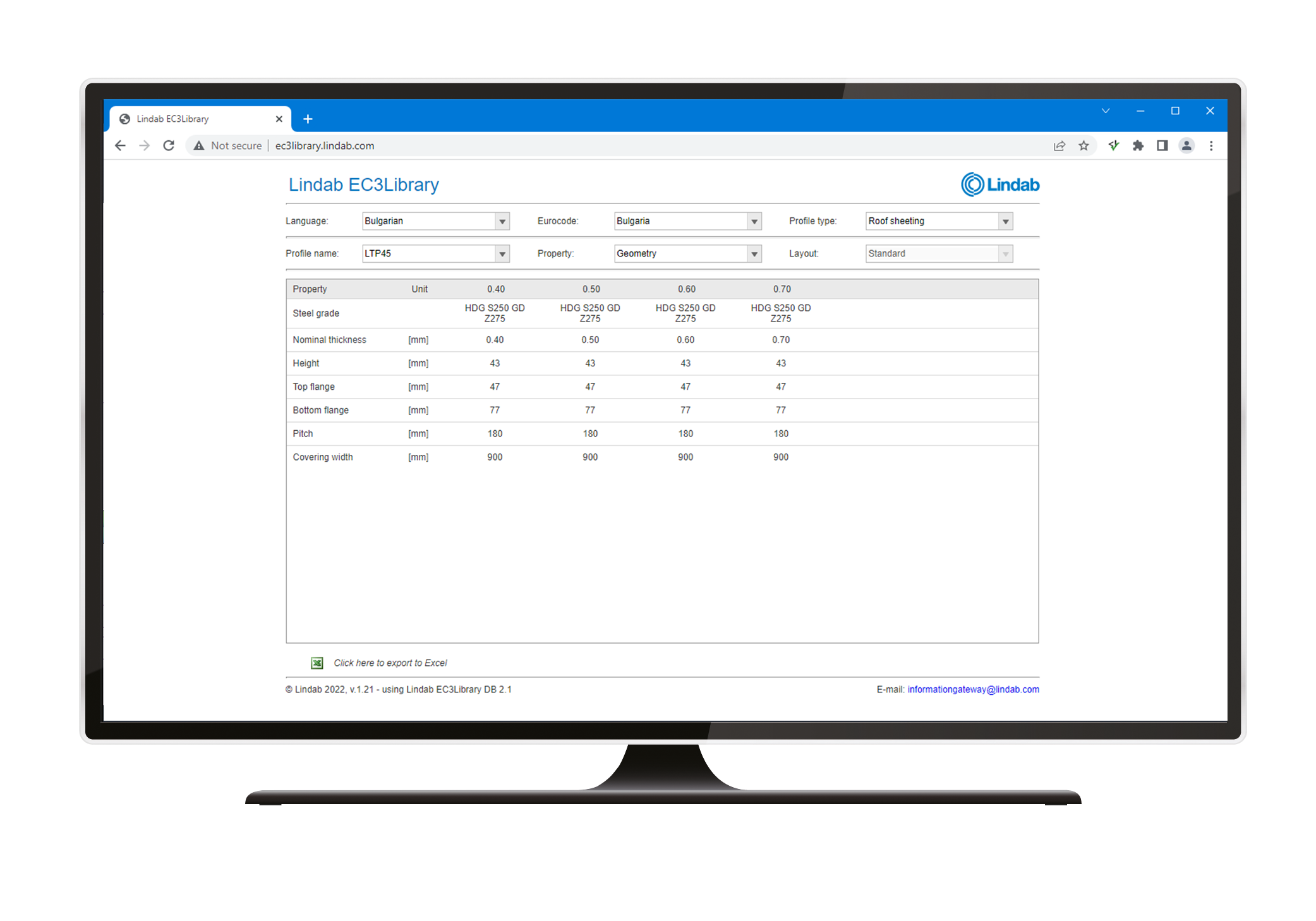 This web application contains section data and geometries for our portfolios of sheet metal, C, Z, U and hat profiles. The properties are calculated according to Eurocode and are available for a selection of European countries.