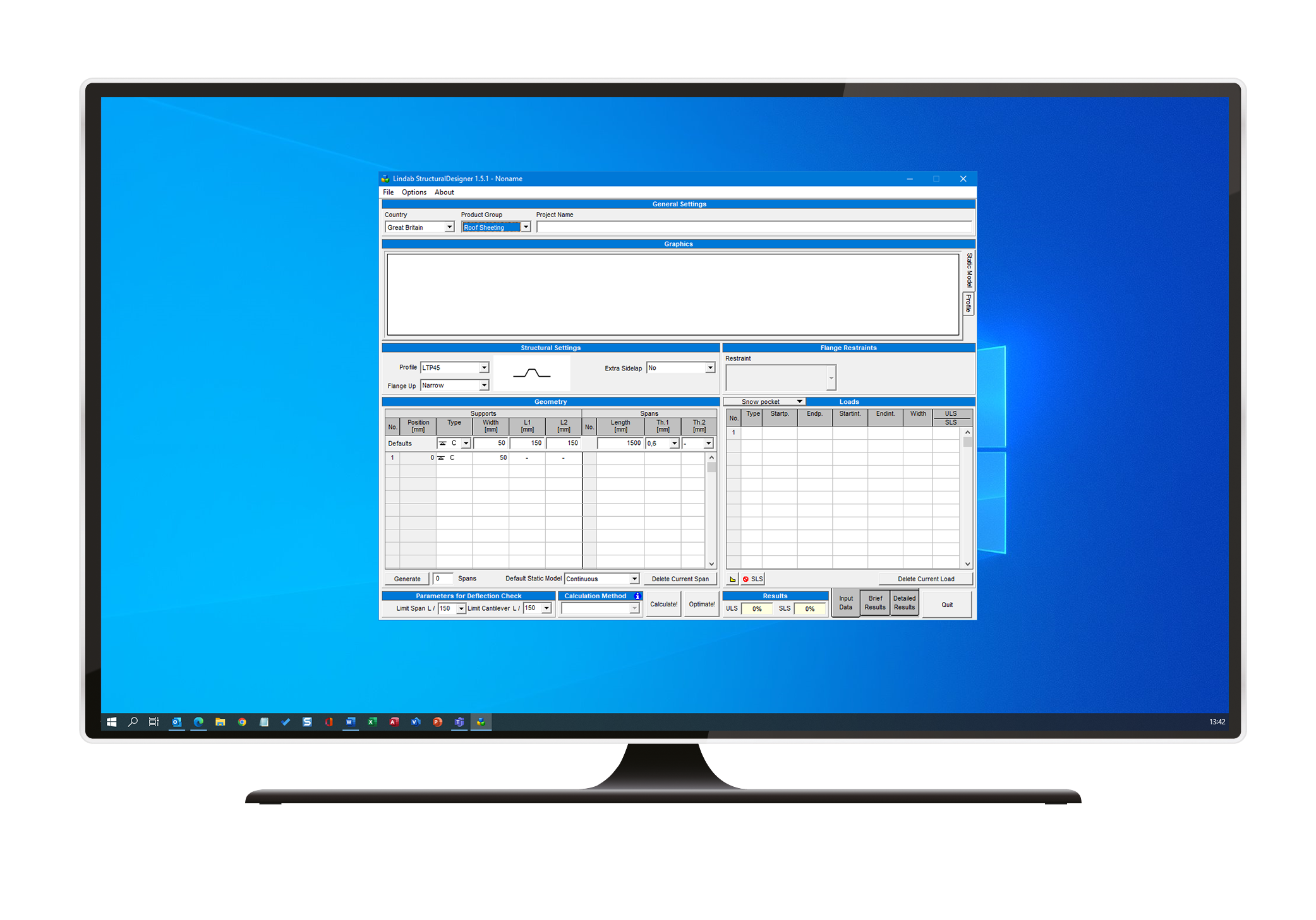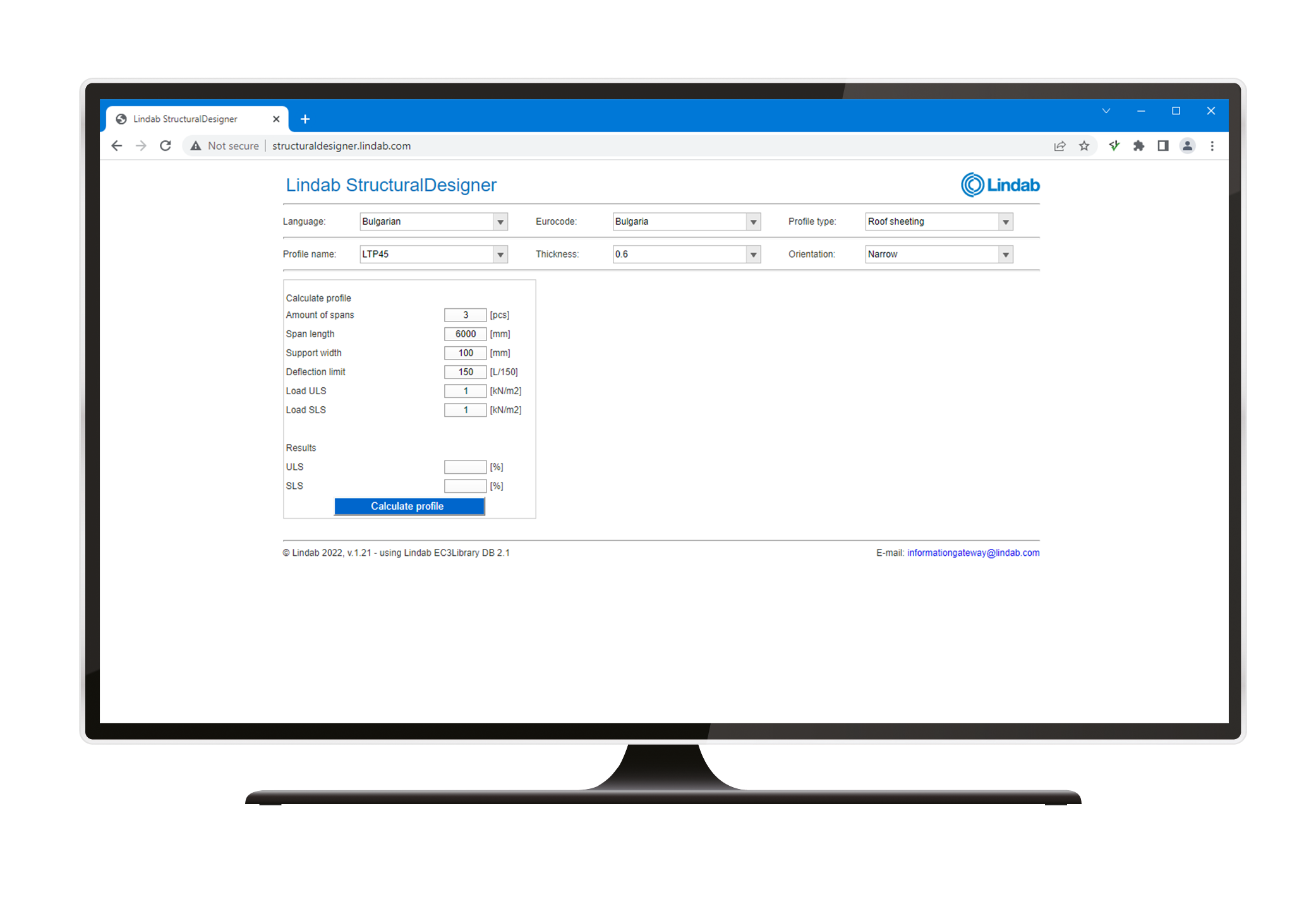 StructuralDesigner is a Eurocode based design software for profiled sheets, purlins and hat-profiles. Lindab's complete range of profiles within these product categories are included. The software has a built-in module for analysis of snow pockets, and it presents results in Ultimate Limit State and Serviceability Limit State.