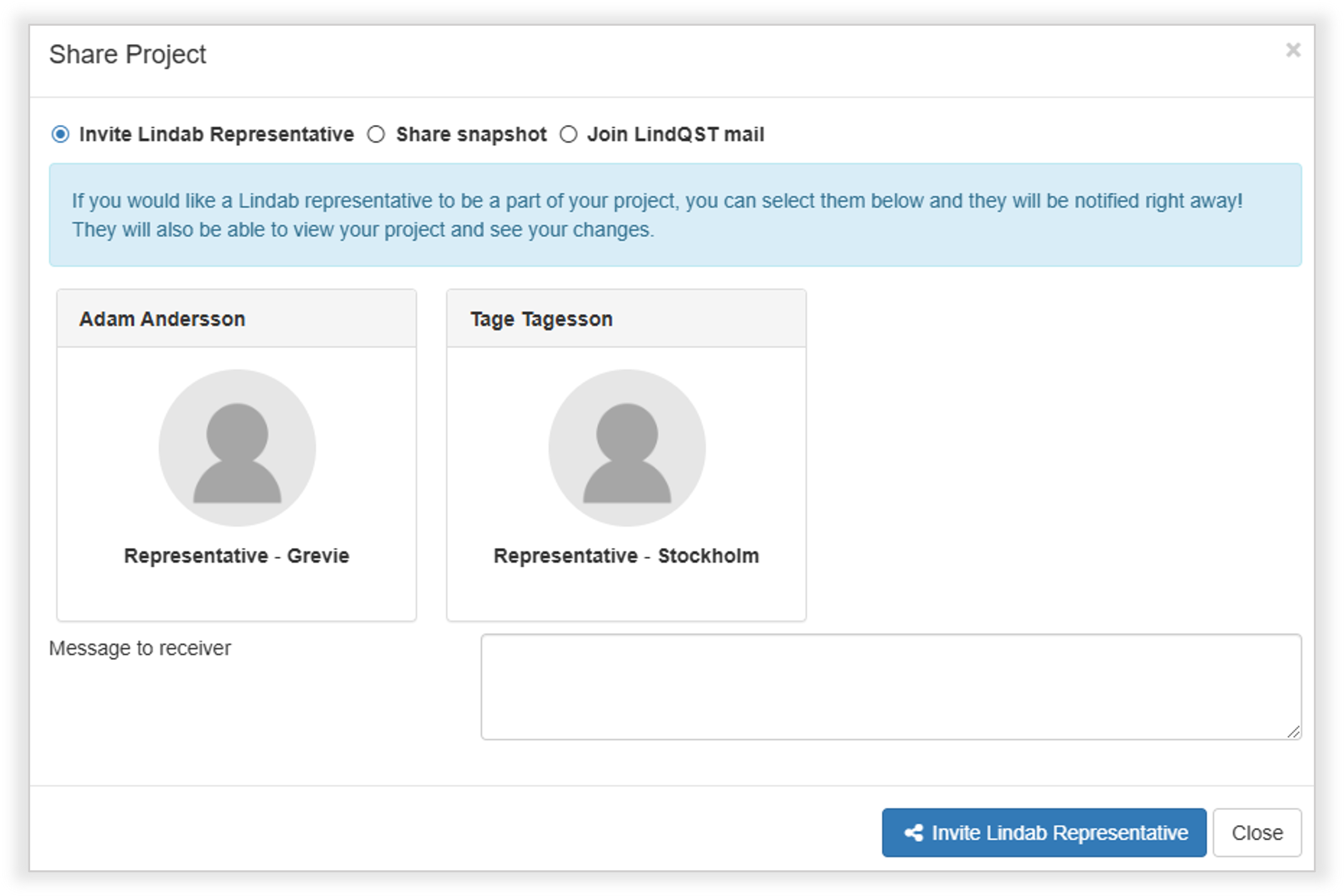 3.Select “Invite Lindab representative”.